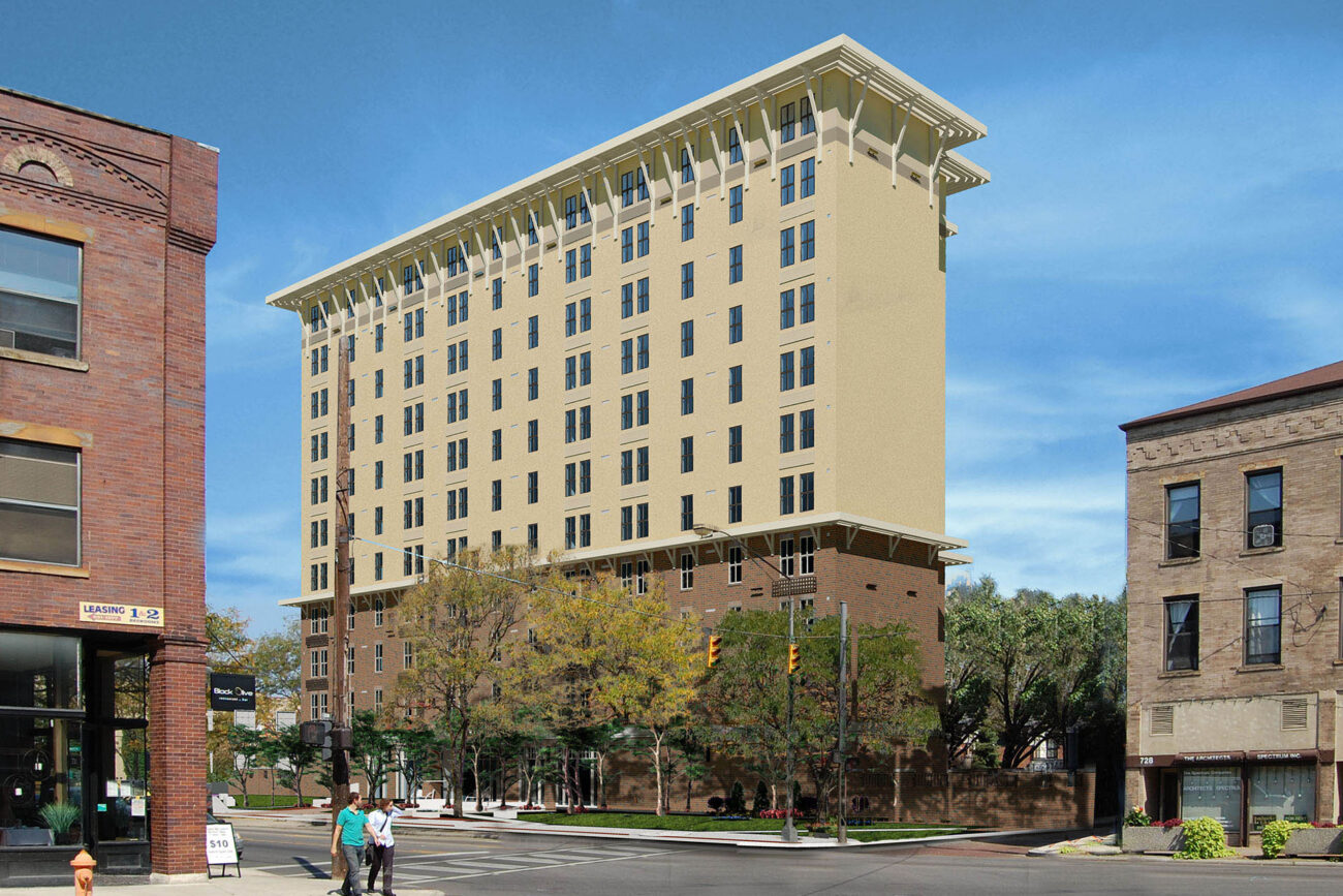 PROJECT SCOPE INCLUDED IMPROVEMENTS TO THE EXISTING SITE, MODIFICATIONS TO THE EXTERIOR BUILDING FAÇADE AND INTERIOR DESIGN CHANGES TO THE FIRST FLOOR COMMON AREA.