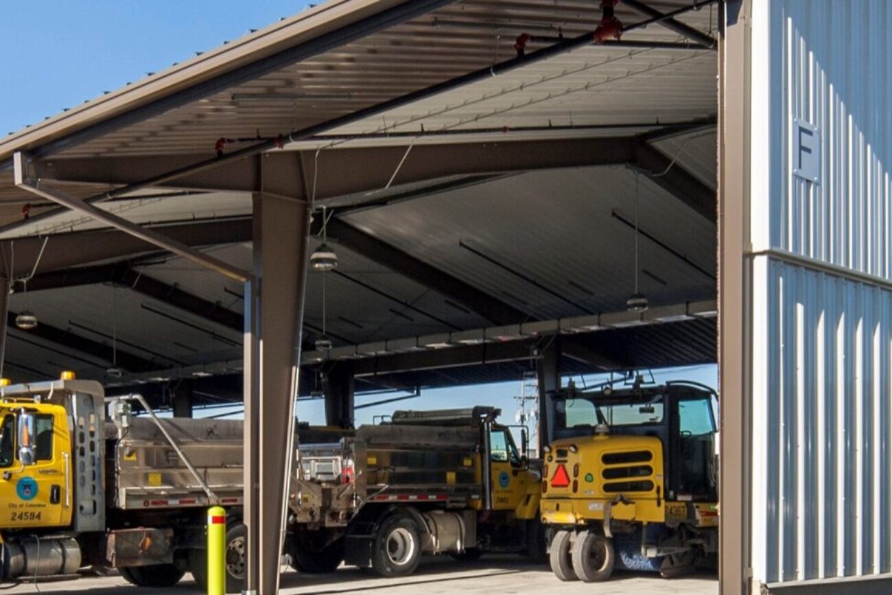The complex buildings include; A shared office of conventional construction; Pre-engineered buildings for the Facilities Management storage/shop as well as the Public Service Department truck garage/maintenance; A salt storage structure; Renovated existing building housing the Department of Technology offices and shop; And a renovated garage for the Environmental Abatement offices and shop. The project included specialty equipment such as: a brine machine, brine containment, mono-crane, and a shared truck wash facility. The shared office building includes offices for the Public Service Department and Facilities Management Department, conference rooms, restrooms, and locker rooms for all departments. McKinley Maintenance Complex is set to achieve LEED Silver Certification in 2017.