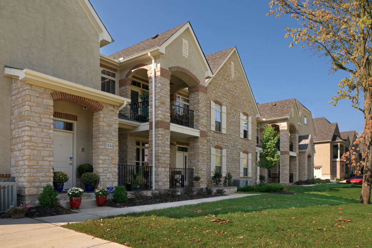 The 10 unit buildings contain 2-three bedroom units, 6-two bedroom units and 2-one bedroom units. The 5 unit building has 1-three bedroom unit, 3-two bedroom units and 1-one bedroom unit. All first floor units and site amenities have been designed to meet accessibility requirements. Each floor plan has 9 ft. ceilings, open kitchen plans and open air exterior patio/balconies to capture views of the landscape. The building's exterior is primarily cultured stone and stucco.